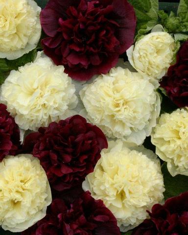 Завораживающая смесь окрасок. Мощный садовые гиганты высотой 200 см. Цветы махровые, бархатистые, крупные, желтые и бордовые. Цветет в июле-сентябре. Используются для небольших групп на газоне, миксбордеров, декорирования стен, заборов и на срезку. Срезанные стебли в стадии бутонов распускаются в воде.