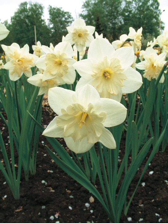 Нарцисс Mount Hood относится к группе крупно-корончатых. Высота растения до 35 см. Цветок белый, с кремово-белой коронкой. Диаметр цветка около 10 см. Посадка - август - начало сентября. Глубина посадки 15-20 см на расстоянии 10-12 см друг от друга. Цветение начинается с середины мая. К почве особенных требований нет, но при условии, что она хорошо дренирована. Расположение для посадки - солнечные места или полутень.