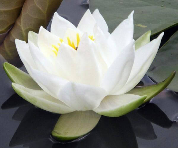 Нимфея Alba– представляет собой многолетник с округлыми листьями на длинных черешках. Каждый лист вырастает до 30 см в поперечном сечении. Молодые листья – красные, постепенно становятся темно-зелеными сверху и фиолетовыми снизу. Цветок до 15 см в диаметре, молочно-белого цвета с густыми тычинками. Созревает под водой. Цветение продолжается с июня по сентябрь.