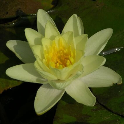 Нимфея гибридная Chromatella – кувшинка с ярко-желтыми цветами до 18 см в диаметре. Наружная сторона лепестков иногда имеет розовый оттенок. В сердце цветка желтые тычинки. Листья зеленые с коричневыми пятнами. Цветение обильное в течение всего лета до заморозков. Высаживать лучше в полутенистой стороне.