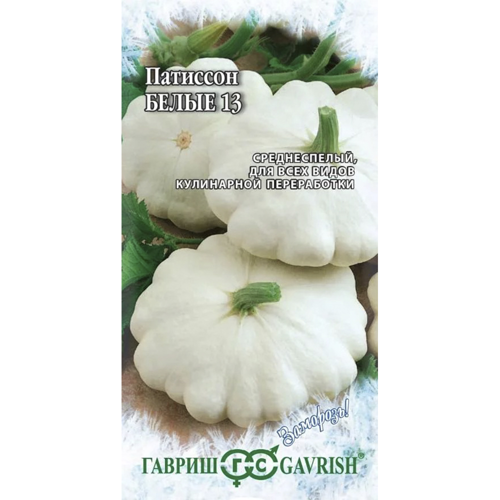 Среднеспелый ( 55-65 дней от всходов до начала плодоношения) сорт. Растение кустовое, ветвящееся. Плод дисковидный с зубчатыми краями, массой 0,4 - 0,5 кг. Плоды очень выровненные, гладкие, белые, с плотной мякотью белого цвета. Прекрасно подойдут для всех видов кулинарной переработки, для цельноплодного консервирования, сохраняют свои качества в замороженном виде. Сорт высокоурожайный (до 6,5кг/м2), устойчив к болезням.