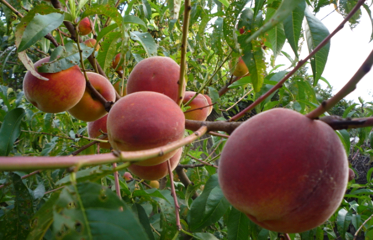 Персик Golden Jubilee - американский сорт. Представляет собой среднерослое быстрорастущее дерево высотой 4-5 м. Плоды крупные, шаровидные, со слабовыраженным брюшным швом, углубляющимся к основанию. На вершине узкая, глубокая воронка. Кожица плотная, слегка опушена, золотисто-желтого оттенка с темно-красным румянцем.