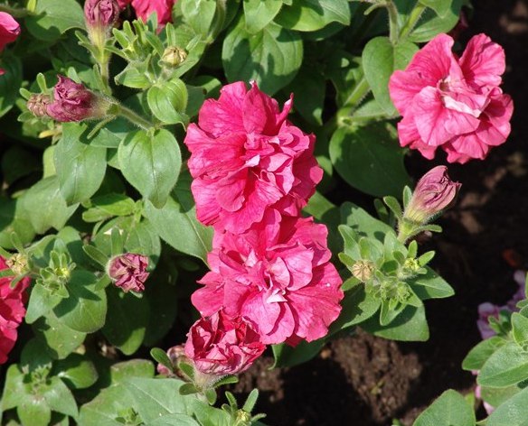 Петуния Duo травянистое растение, образующие прямостоячие, густоветвистые, компактные кусты 20-30 см высоты и 30-40 см диаметром. Листья яйцевидные, зеленые, слабо опушенные. Цветки около 5 см в диаметре, густомахровые, лиловые или розовые до красных и пурпурных, с более густо окрашенными жилками или однотонные, по краю сильно волнистые. Цветет обильно и продолжительно. Устойчив к неблагоприятным условиям.