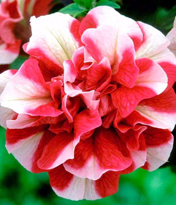 Петуния Red and White Delight - уникальный, крупноцветковый, махровый однолетник, отличающийся компактностью куста, повышенной устойчивостью к неблагоприятным условиям, и длительным (с мая до глубокой осени) обильным цветением. Высота растения 25 см. Диаметр цветка 8-10 см. Цветки яркие, крупные, махровые, изысканные, светящиеся, рубиново-красно-белые, с необыкновенным, изумительным ароматом.