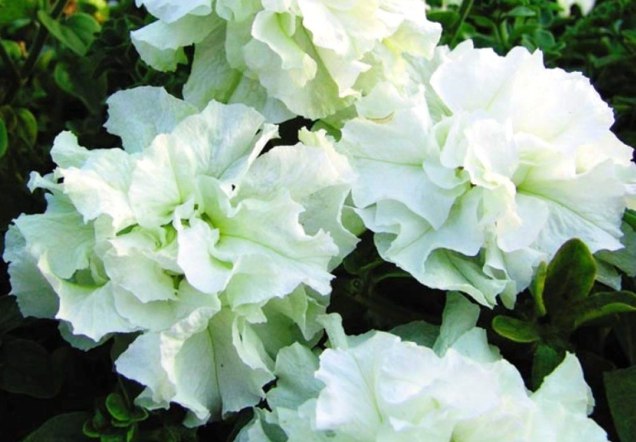 Петуния Sonata - раннецветущий однолетник. Высота растения 40 см. Диаметр цветка 12 см. Cорт отличается необычной снежно-белой окраской многочисленных цветков и сильной гофрировкой по краям лепестков. Это одна из самых ранних (зацветает на 2-4 недели раньше всех видов) многоцветковых петуний, отличается своим изяществом, красотой, неприхотливостью и является рекордсменом, по обильности и продолжительности цветения.