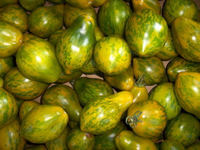 Помидор Michael Pollan - очень редкий уникальный сорт. Кустарник мощный, высотой 1,2 м. Плоды продолговато-выпуклой грушевидной формы,  зелено-желтого цвета с темно-зелеными полосами и пятнами, массой 60-100 грамм. Вкус и аромат необычные. Урожайность высокая.