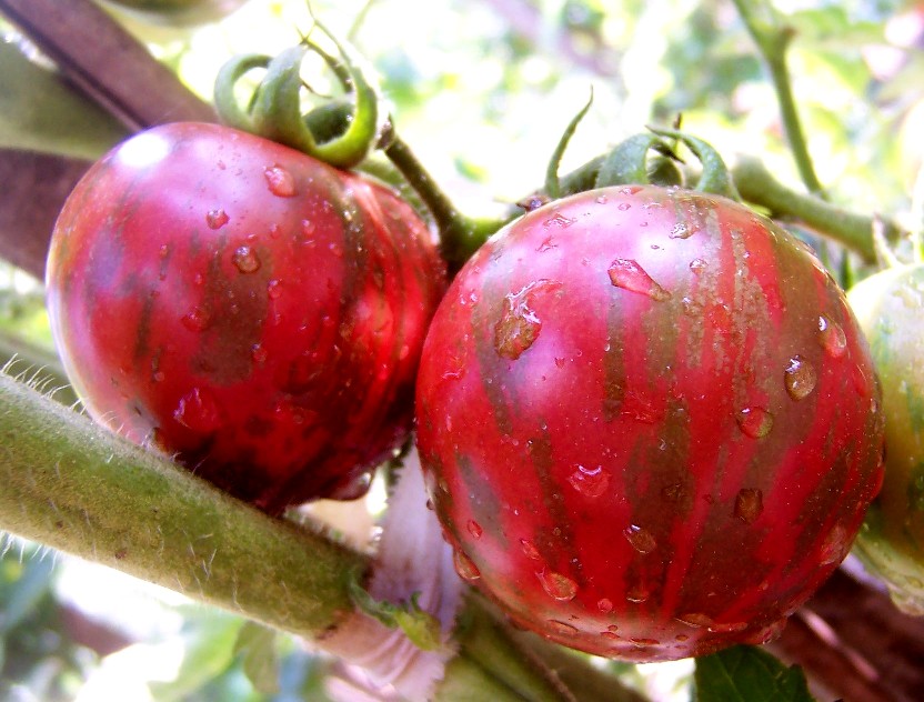 Помидор Violet Jasper - очень редкий сорт. Растение высокое, среднего срока созревания. Плоды идеально-круглые, полосатые, красно-фиолетово-зелено-коричневого цвета, с нежной, сочной мякотью и сладким, приятным вкусом. Урожайность высокая.