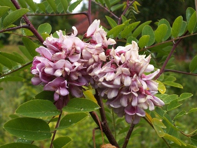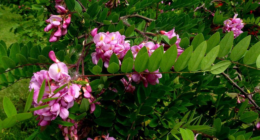 Листья длиной до 20 см, из 13—25 (до 27) листочков; листочки продолговато-эллиптические, длиной 2,5—4 см, шириной до 2 см, на верхушке более или менее тупые и с коротким шипиком, при основании округлые или широко клиновидные, в ранном возрасте опушённые, позднее сверху голые, ярко-зелёные, снизу сероватые, голые или опушенные.