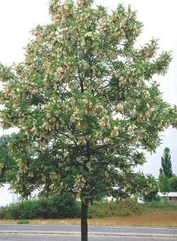 Робиния лжеакация Bessoniana - листопадное, крупное дерево с широко конусовидной, густой кроной и прямым основным стволом, с возрастом более рыхлое, округло-яйцевидное и компактное. Достигает (15) 20-25 м высотой и 10-12 (15) м шириной. Годовой прирост после 15 лет 25-50 см.  Побеги светло-коричневые, в основном без колючек. Листья расположенные очерёдно, непарноперистые, 20-30 см длиной, листочки по 9-19, эллиптические, 3-4 см длиной, тёмно-зелёные или голубовато- зелёные, с нижней стороны светло-зелёные, поздно распускаются; осенняя окраска поздняя, желтоватая. Цветки редко образуются.