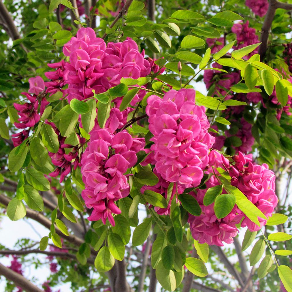 Робиния лжеакация Decaisneana - декоративное дерево. В 10 лет его высота составляет 3,5 м, диаметр ствола 2,0-4,5 см. Листья зеленые. Цветки отличаются розовым окрасом.