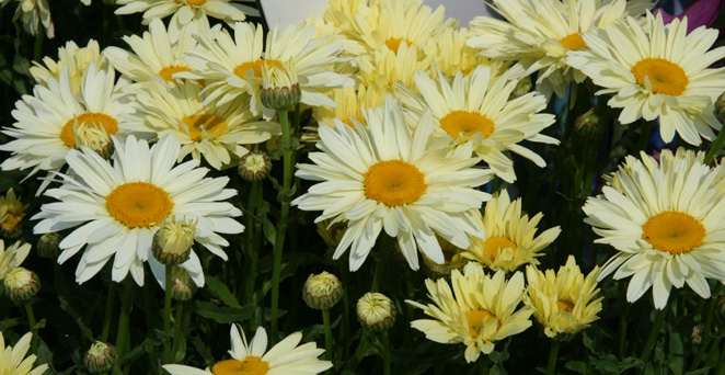 Ромашка Broadway Lights - новый сорт-хамелеон с потрясающей окраской, меняющейся на протяжении всего сезона от нежно-лимонной до насыщенно желтой. На одном кусте могут быть одновременно соцветия разной расцветки, что делает его еще более привлекательным. Цветки в больших одиночных корзинках, по краям язычковые, бесполые, в середине – с пестиками и тычинками, трубчатые. Цветение происходит с июня по сентябрь. Трогательные цветы всегда поднимают настроение даже в самый хмурый день. Хорош в срезке. Высота взрослого растения достигает 80см.