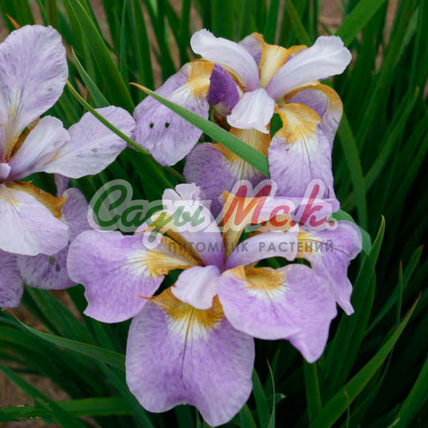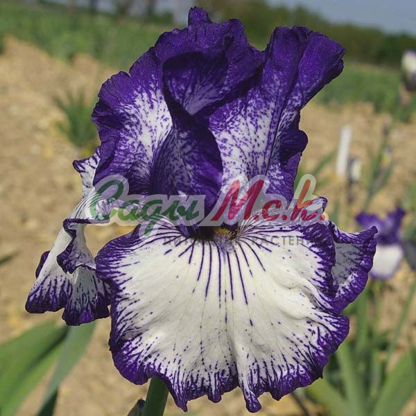 Ирис бородатый Аффайр - белые с фиолетовым отливом стандарты, фолы горчично-жёлтые с тонкой сиреневой каймой и горчичной бородкой. Группа Высоких бородатых ирисов, высота куста 75 см.