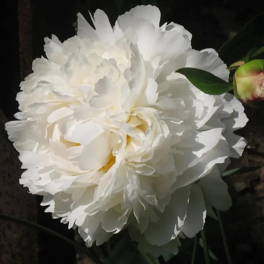 Травянистый пион Bowl of Cream махровый, розовидный. Огромные пышные соцветия имеют кремово-белый цвет. А благодаря желтому центру бутона кажется, будто они подсвечены изнутри. На фоне удлиненных темно-зеленых листьев соцветия выглядят просто роскошно. Высота 80 см. Размер цветка 19 см.