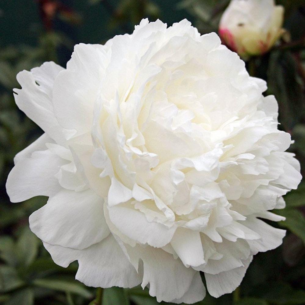 Травянистый пион Ann Cousins травянистый. Махровый розовидный, плотный, лепестки крупные, ровно сложенные. Чисто - белый. Стебли сильные, но изгибаются. Развивается медленно. Тычинки отсутствуют. Пестики отсутствуют. Есть боковые бутоны. Диаметр 20 см. Высота 80 см. Ароматный. Поздний срок цветения.