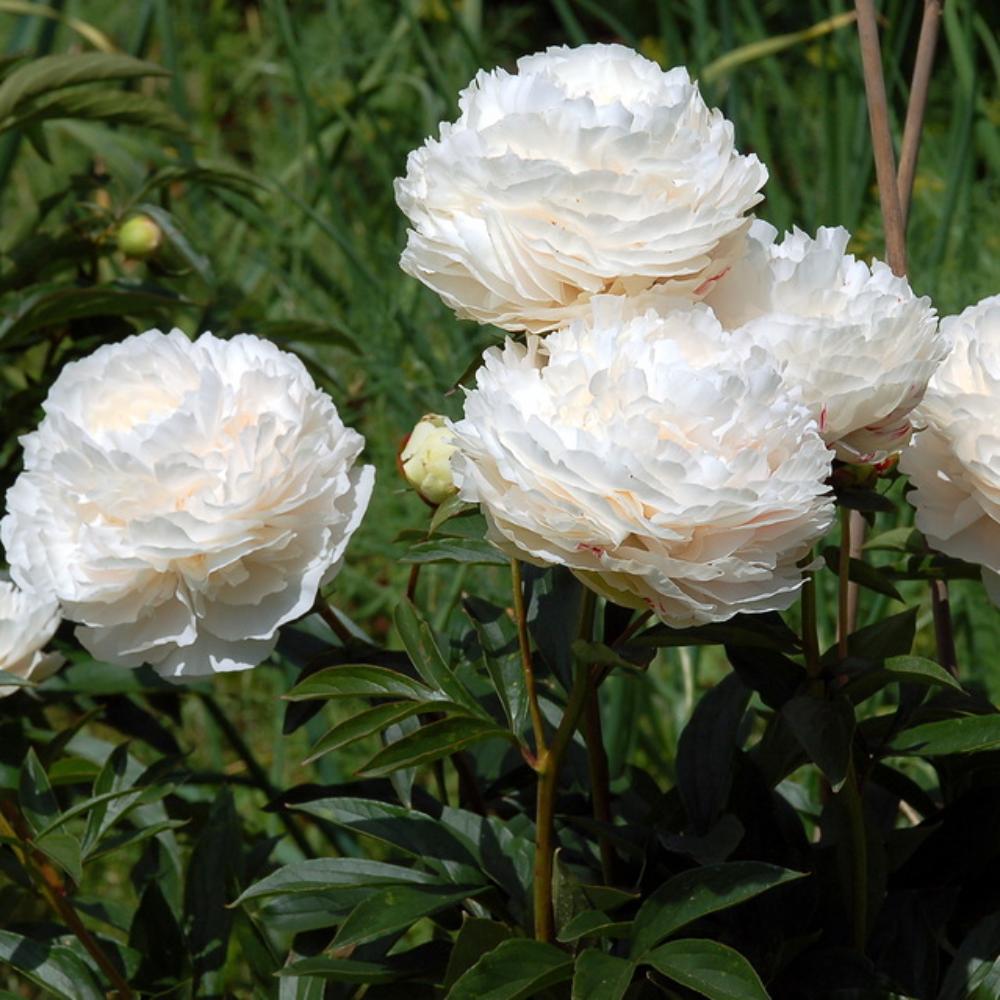 Семена пиона Solange молочноцветковые многолетние имеют поздний срок цветения. Его махровые шаровидные бутоны в диаметре способны достигать семнадцати сантиметров, а раскидной куст имеет длину в среднем семьдесят сантиметров. Соцветие пиона плотное, лепестки имеют нежный кремовый цвет с примесью розоватого оттенка. Стебли саженцев очень сильные и толстые, куст приобретает красивую и аккуратную форму, со временем он отлично разрастается и становится пышным. В течение первых двух лет пион Solange наращивает свою корневую систему, а насладиться великолепием соцветий можно лишь на третий год.