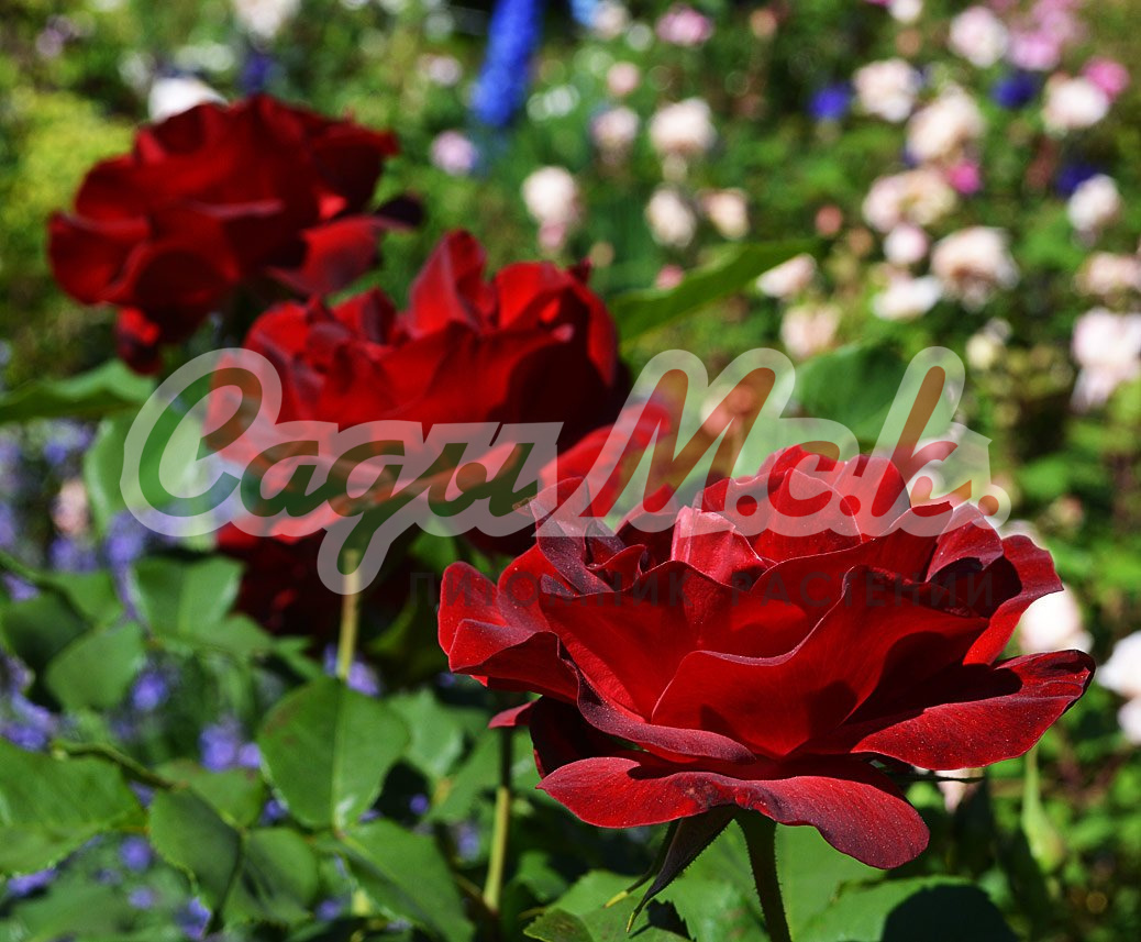 Роза Alecs Red - вишнево-красные цветки, бархатистые, очень крупные (диаметр до 13 см), махровые (36-40 лепестков), с богатым, сладким ароматом, чаще одиночные или в соцветиях. Цветки не боятся дождя и не выгорают. Листья крупные, зеленые, кожистые, сильно-блестящие. Высота растения около 80 см. У сорта много достоинств - мощный, устойчивый к болезням куст, сильные цветоножки и обильное цветение крупными цветками в течение всего сезона.
