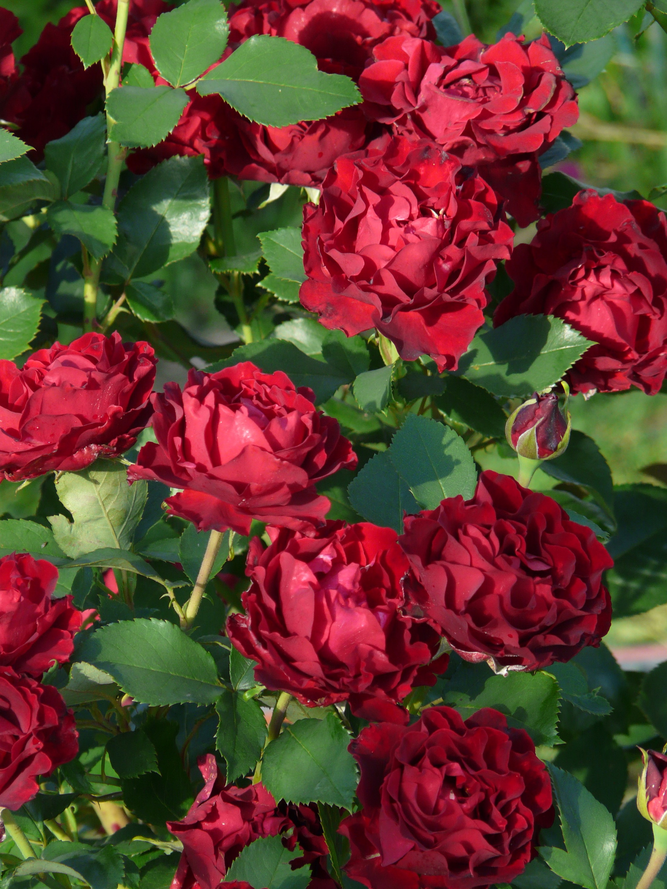 Изящный куст вырастает до 0,8 м в высоту и около 0,5 м в ширину. Стебли покрыты густой, ярко-зеленой листвой. На цветоносе обычно формируется один бутон. Размер цветка – 10 см. Оттенок – красный с черным налетом. На обратной стороне лепестков могут проявляться золотистые прожилки. Аромат – легкий, едва заметный. Крупномер Hommage a Barbara проявляет среднюю устойчивость к мучнистой росе и черной пятнистости. Бутоны совершенно не боятся дождя. Роза относится к повторноцветущему сорту.