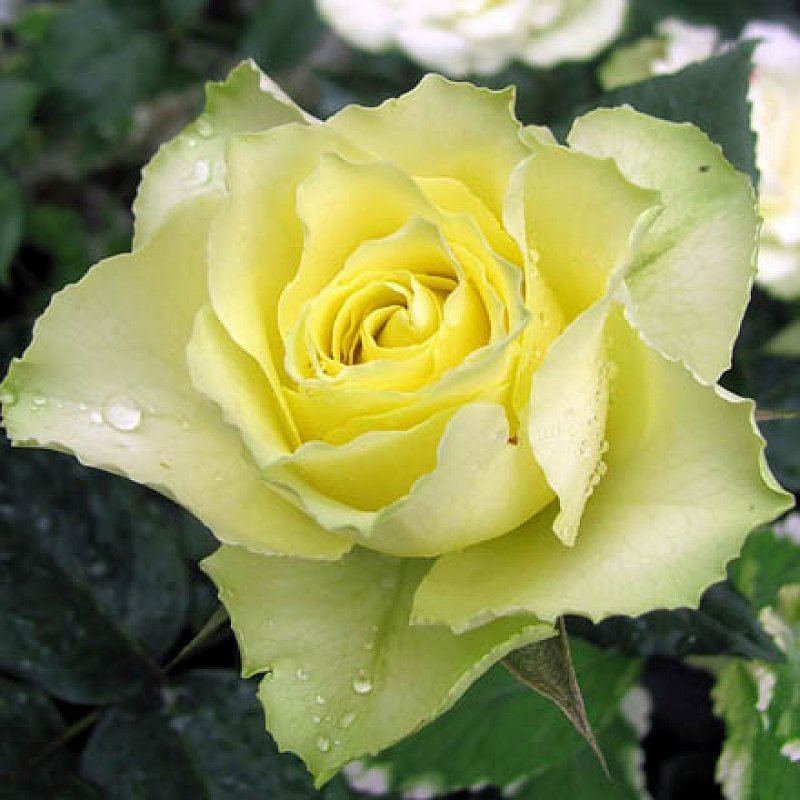 Компактные кусты вырастают до 0,8 м в высоту и около 0,6 м в ширину. На побеге формируется один бутон. Размер цветка – около 7 см в диаметре. Оттенок – желто-зеленый, салатовый. В бутоне около 47 волнистых лепестков, распускаясь, они образуют чашу. Крупномеры Limbo выделяются крупной, глянцевой, темно-зеленой листвой. Колючек на стеблях практически нет. Запаха цветок не источает. Бутоны не боятся дождя, но вот листва подвержена мучнистой росе и черной пятнистости.