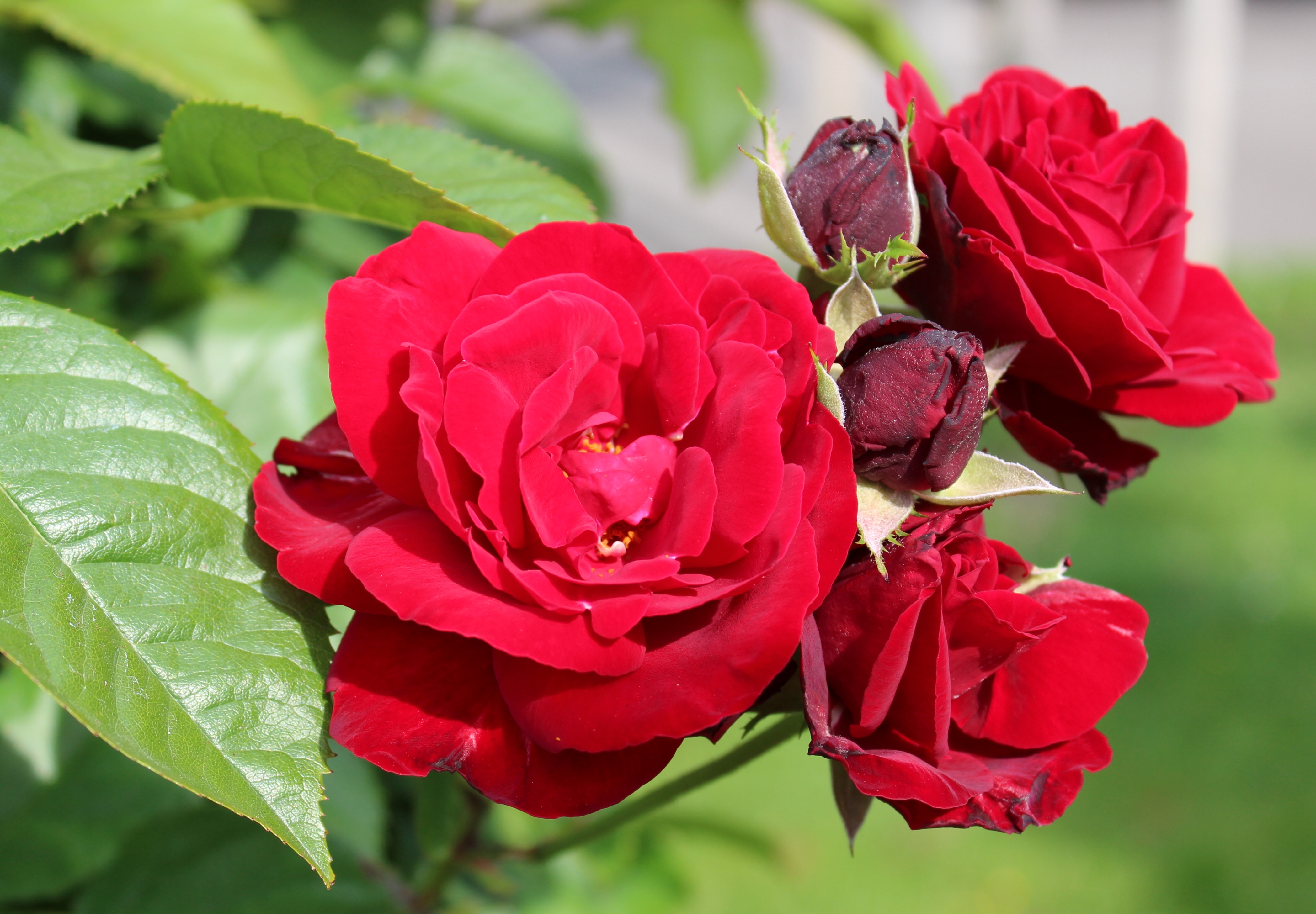 Europeana цветет полумахровыми или махровыми чашевидными розетками около 7-8 см в диаметре очень чистого красного цвета. Полностью распустившиеся цветки оттеняются пучком ярко-желтых тычинок в центре. Аромат легкий или отсутствует. Листва необычайно долго сохраняет красный оттенок, и становится темно-зеленой только перед тем, как цветки на концах побегов распустятся. Куст густой, округлый, 60-90 см высотой и шириной.