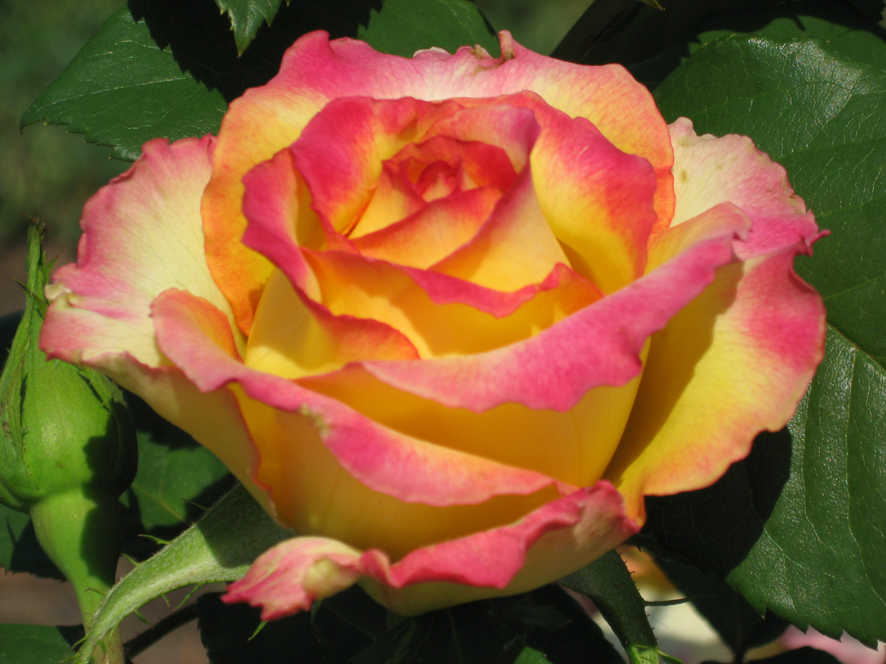 Роза Confetti - это яркая двухцветная желто-оранжевая роза с переходом в розовый цвет по краям. Чашевидной формы бутон раскрывается медленно и непринужденно. В полном раскрытии достигает 12 см в диаметре. Обладает ярко-выраженным ароматом чайных роз. Достаточно высокий куст покрыт темно-зеленой матовой листвой. Устойчивость к морозу высокая.
