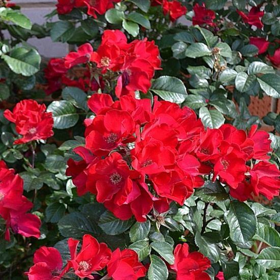 Куст вырастает до 2 м в высоту и около 1,5 м в ширину. Гибкие, длинные побеги покрыты большими шипами и кожистыми листьями. На цветоносах формируются кисти по 5-10 бутонов. Размер немахрового цветка с волнообразными лепестками – 7 см. Оттенок – ярко-красный, алый. Аромата практически нет. Крупномер Robusta болеет черной пятнистостью только в неблагоприятные годы, проявляет высокую устойчивость к мучнистой росе. Бутоны не боятся дождя. Сорт непрерывно цветущий.