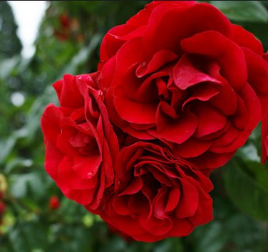 Роза Amadeus - необыкновенная красная плетистая роза, притягивающая к себе внимание своим пышным, волнообразным цветением и крупными, чашевидными, потрясающе красными, махровыми цветками. Они распускаются из округлых, темно-красных бутонов в соцветиях по 5-7 шт., обладают легким ароматом шиповника, отлично переносят дождь и жару. Диаметр цветка 8 - 10 см. Высота растения более 2-х метров. Куст мощный, прямостоячий, сильнорослый. Листва темно-зеленая, глянцевая, прекрасно контрастирует с сияющее-красными цветками, выделяя их на своем темном фоне. Сорт характеризуется очень хорошей морозостойкостью и хорошей устойчивостью к заболеваниям.