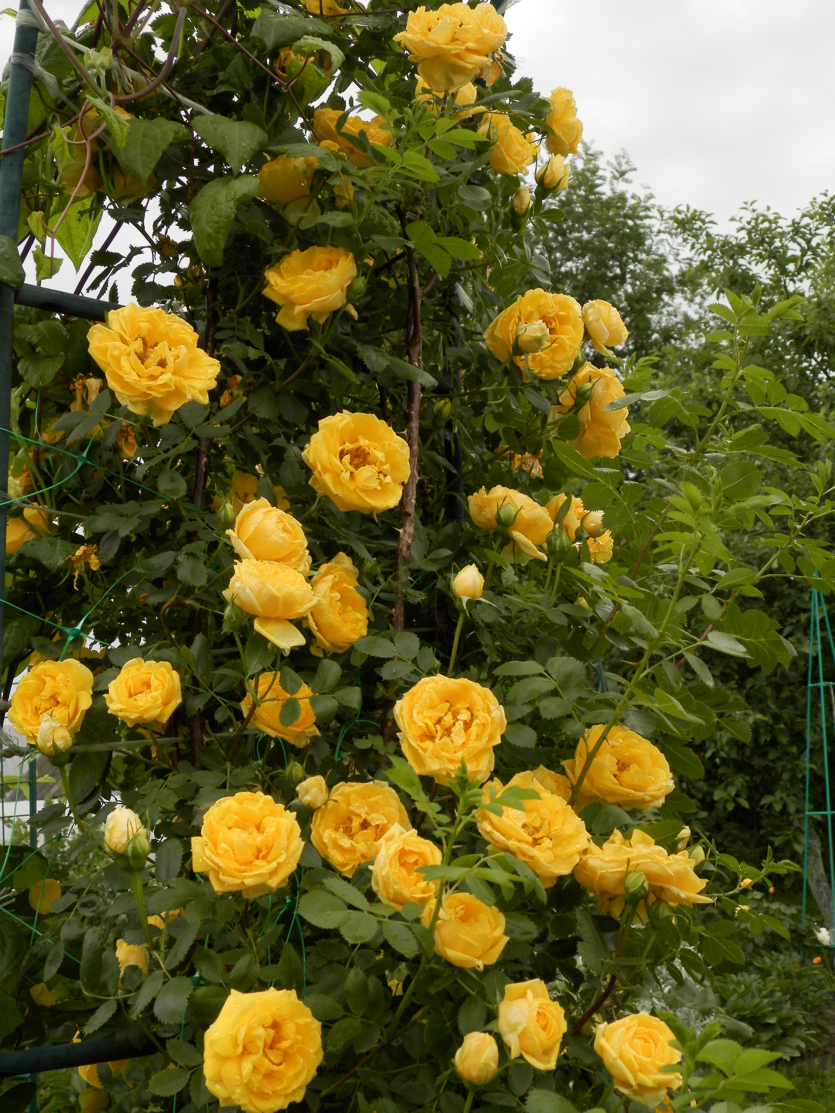 Роза .Gold Stern Цветки -крупная (до 10 см), махровая, чашевидная, золотисто-желтая. Лепестки насыщенно-желтые, до лимонно-желтых по краям. Цветы появляются по одному или в небольших кистях (редко больше четырех), хорошо выдерживают дождь. Высота куста 2 - 2, 5 м. Цветение обильное, до самых морозов. Сорт морозостойкий.