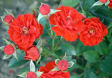 Роза Orange Meillandina - небольшие оранжевые или оранжево-красные цветки чашевидной формы, состоят в среднем из 40 лепестков собраны в соцветия по 1-3 шт, в полном роспуске показывают серединку. Цветение обильное. Листва кожистая, полу-глянцевая, темно-зеленая. Сорт отличается высокой устойчивостью к болезням и дождю.