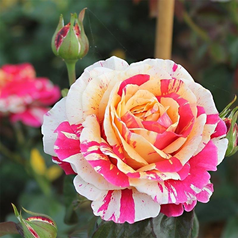 Роза плетистая Ванилла Фрейз – это самый яркий сорт. Уникальное контрастное сочетание белого и алого на каждом лепестке впечатляет. Сад приобретает особый шарм, если в качестве вертикального озеленения использована именно эта роза. Пестрые цветы притягивают взгляд, невероятно красиво выглядят на фоне темной зелени листьев.