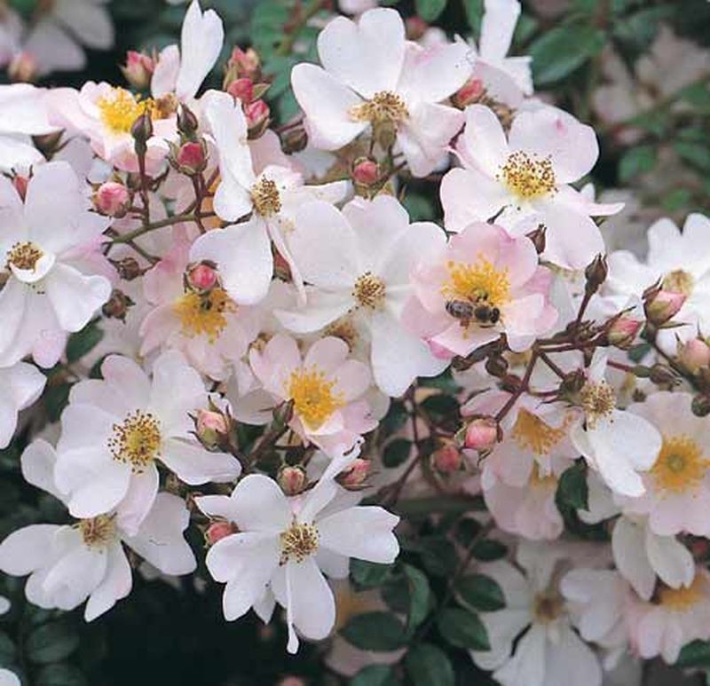 Роза Вайсе Имменси - в высоту куст достигает около полуметра, зато в ширину распускает стебли длиною до 5 м. Обильноцветущий сорт, сохраняющий прекрасный внешний вид цветков на всех стадиях цветения. Данный сорт формирует бутоны размером около 4 см. Оттенок – светло-розовый, на солнце не выгорает. Цветет однократно, но очень долго. Саженцы проявляют среднюю устойчивость к мучнистой росе и черной пятнистости. Бутоны не портятся от дождя. Зимой куст нуждается в укрытии, отзывается на подкормки.