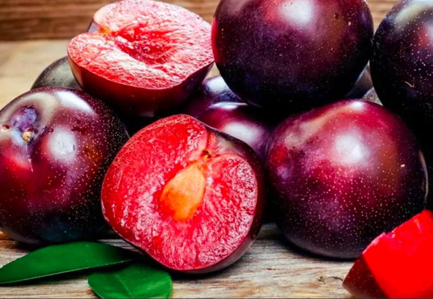 Гибрид абрикоса, сливы и персика. Дерево с раскидистой кроной, быстрорастущее. Крупные плоды, листья и шипы сильно напоминают обычную сливу. Форма и размер плодов - абрикос.  Окраска плода фиолетовая.  По вкусу фрукт напоминает сливу и абрикос. Мякоть  легко отделяется от округлой косточки и напоминает сливу и абрикос. На косточке можно обнаружить классический «персиковый» узор. Диаметр плодов - 6-7 см. Выраженного аромата у плодов нет. Вкус плода изменяется по мере созревания: у полностью созревшего плода сильнее  выражен вкус абрикоса, а у недоспевшего - вкус сливы.  Плоды не склонны к осыпанию. Урожай созревает в конце августа – начале сентября. Не требует укрытия на зиму. Российские садоводы-любители, уже поселившие в своих садах шарафугу, подтверждают, что эта культура способна выдерживать зимние температуры до -30'С, а кратковременные – даже до -35'С. Не смотря на имеющееся незначительное подмерзание побегов при столь низких температурах, шарафуга весной быстро восстанавливается, цветет и нормально плодоносит.