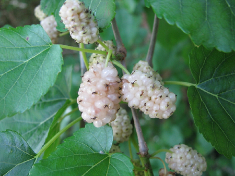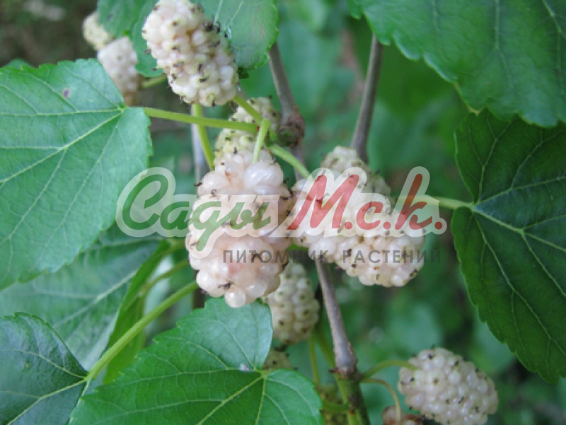 Саженцы шелковицы Белая медовая относятся к плодоносным сортам. Дерево листопадное с широкой кроной, цветки собраны в колосья. Листья светло-зеленые, простые. Плод сочный, напоминает по строению малину, без запаха, сладкий. Плодоносит регулярно, характеризуется высокой урожайностью. Особенность: низкая транспортабельность. Крупномер шелковицы Белая медовая выдерживает низкие температуры, при подмерзании ветвей, быстро восстанавливается. Сорт не привередлив к почве, не требует особых условий по уходу. Срок созревания приходится на конец июня.