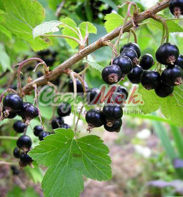 Смородина Поэзия - среднего срока созревания. Куст среднерослый, полураскидистый. Побеги средние, прямые, зеленые с блеском. Листья среднего размера, желтовато-зеленого цвета. Пластинка листа мягкая, слабоморщинистая, слабовогнутая по основным жилкам. Зубчики острые, короткие, неподогнутые. Основание листа со средней выемкой, треугольной формы. Листья пятилопастные с вырезами средней величины. Плодовая кисть средняя, ягоды на ней расположены средне. Ось кисти средняя, прямая. Цветки среднегов размера. Ягоды средней массой 1,2 г, черного цвета, блестящие, без опушения, сладкого вкуса.