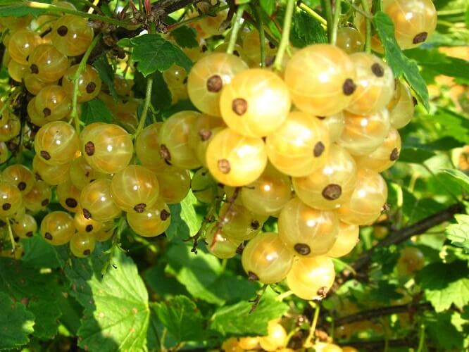 Смородина Голландская белая - старинный урожайный сорт. Время созревания ягод раннее. Ягоды средней величины (0,6-0,7 г), кремовые, округлые или несколько сплюснутые с полюсов, средней величины, к концу кисти мельче. Изменчивость величины плодов в кисти средняя. Семена средней величины. Кожица тонкая, прозрачная, зрелые семена хорошо видны, на поверхности ягоды ясно обозначаются жилки.
