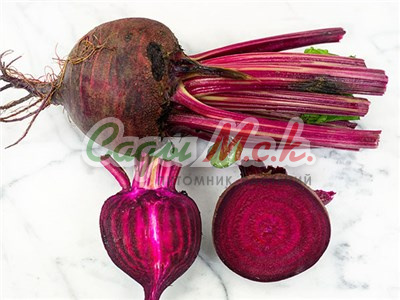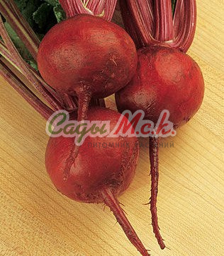 Среднеспелый (100-110 дней от всходов до технической спелости) сорт. Розетка листьев полупрямостоячая. Лист широкоовальный, темно-зеленый, среднепузырчатый. Черешок с нижней стороны красный. Корнеплод округлый, массой 230-430 г. Мякоть сочная, темно-красная, с небольшой кольцеватостью. Свекла богата железом, цинком, йодом, витаминами — это делает ее незаменимой, особенно в зимний и весенний периоды. Рекомендуется для использования в кулинарии и зимнего хранения. Высевают в открытый грунт в конце апреля-начале мая на глубину 2-4 см, по схеме 15х30см.