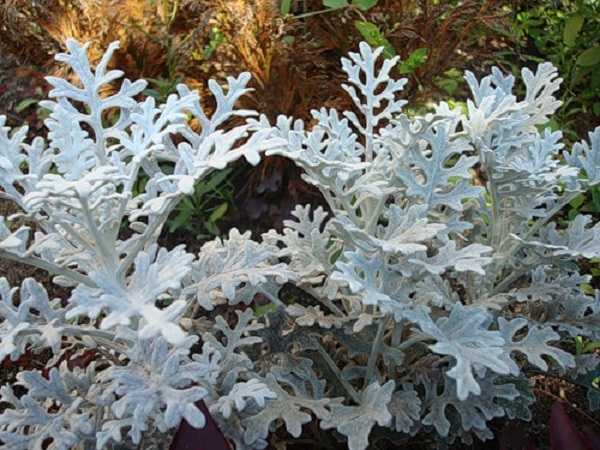 Цинерария Diamond Powder - декоративное растение с необычной формой листьев. Листья покрыты пушком серебристого цвета и создают необычайный окрас. Листья имеют фигурную форму. Растение невысокое, листья смотрят вверх. Используется в декорировании ландшафта.