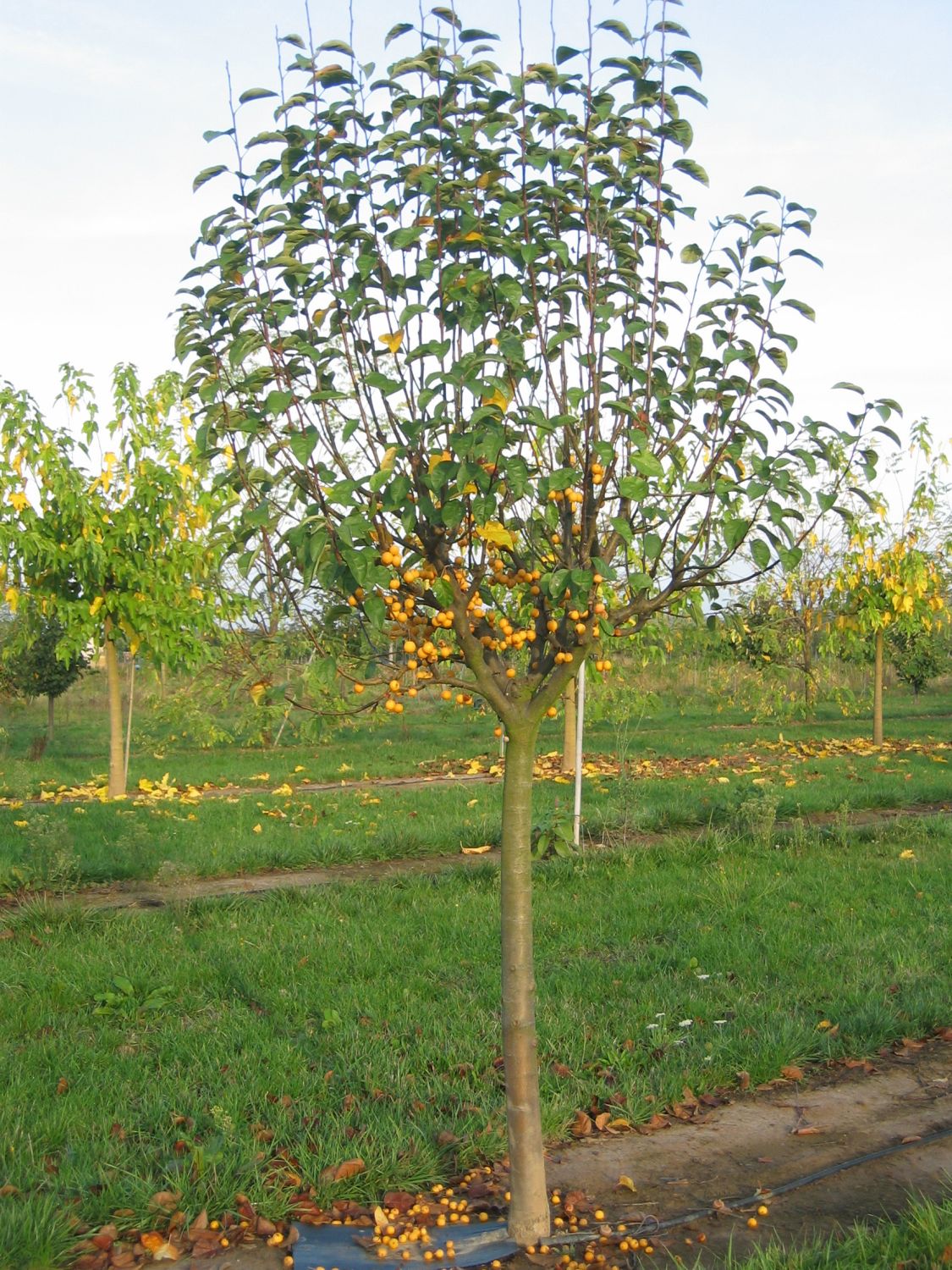 Отличается густой, округлой кроной, карминными бутонами, розовыми цветками и плодами насыщенно-желтого цвета. Крона густая, округлая. Листья зеленые. Осенью листья окрашиваются в желтый цвет с небольшой примесью красного. Цветет обильно в середине мая. Цветки розовые с белым краем, душистые, бутоны карминного цвета. Плодоносит обильно. Плоды насыщенно-желтые, с загаром на солнечной стороне, до 2,5 см. в диаметре, вкусные. Сохраняются на ветвях после листопада, до морозов. Очень декоративно в зимний период.